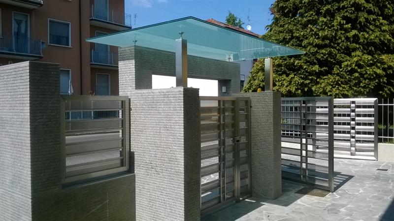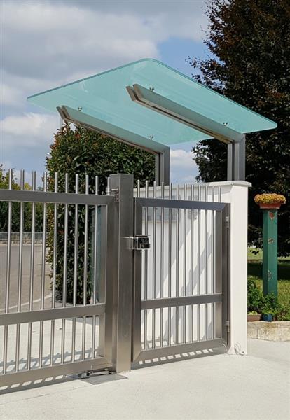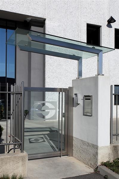 Le tettoie in acciao inox satinato possono essere realizzate a misura secondo le esigenze del cliente.La struttura puo' essere abbinata ad una copertura in alveolare o vetro temperato stratificato.