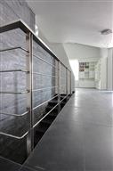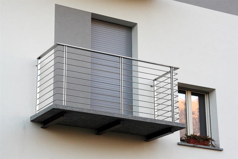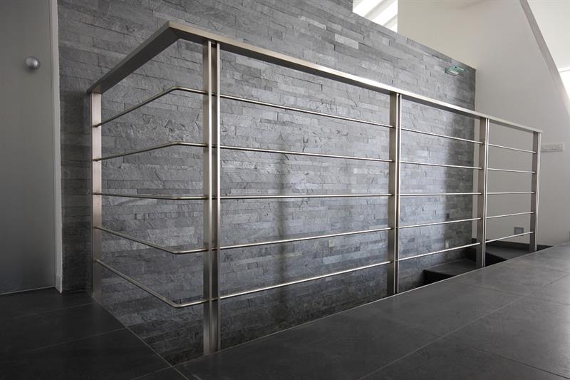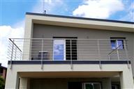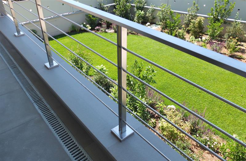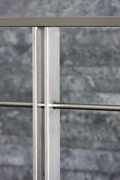 Parapetto inox satinato con piantana con doppio tubolare a sezione rettangolare.