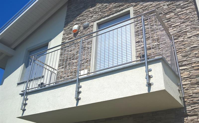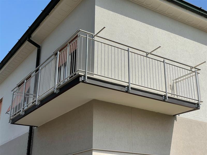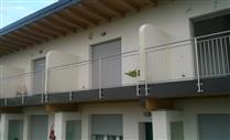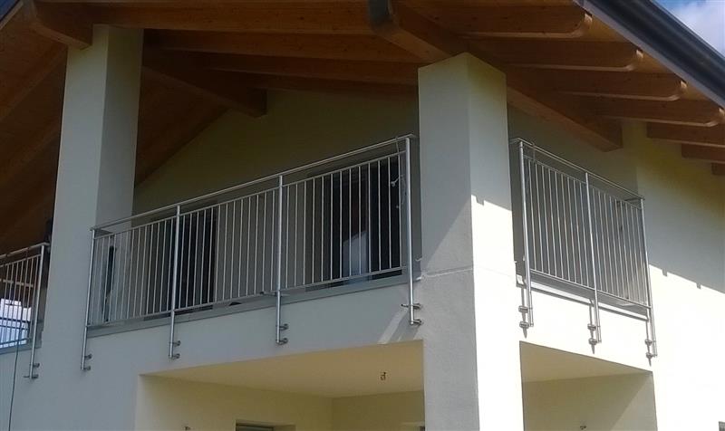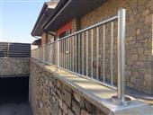 Il fissaggio puo’ essere a muro, sul frontale soletta o sopra soletta, con zanche a murare o con flangia tasselli e viti. Disponibile anche un copriflangia di finitura. Altezza da pavimento: 110 cm.Puo' essere realizzato con o senza corrimano superiore.