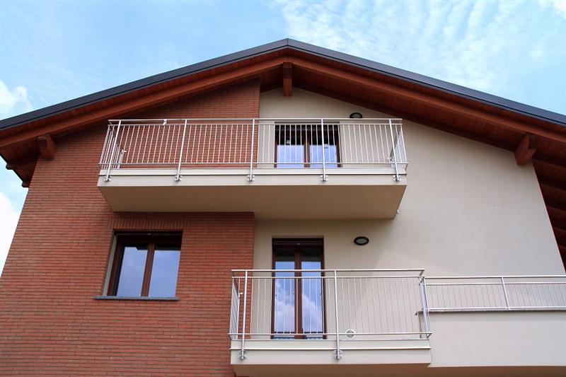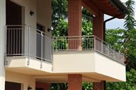 Parapetto con tubolari tondi in acciaio inox satinato.