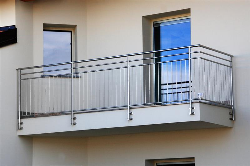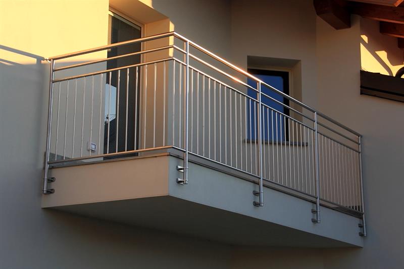 Parapetto con tubolari tondi in acciaio inossidabile satinato.