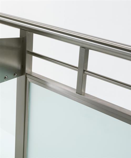 Tauglass è predisposto per vetri stratificati antisfondamento 5+5+0.76 PVB e 6+6+0.76 PVB.Il fissaggio puo’ essere a muro, sul frontale soletta o sopra soletta, con zanche a murare o con flangia tasselli e viti. Altezza da pavimento: 110 cm. Tutti i particolari: fermavetri, tappi, staffe, bulloneria, sono in acciaio inox. Disponibile in Acciaio Inox AISI 304 e in due varianti di disegno.Certificato per un carico di 200kg/m