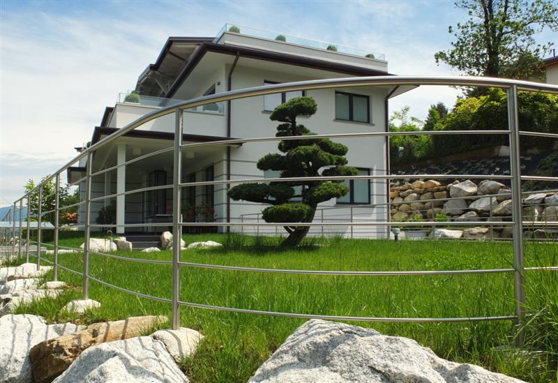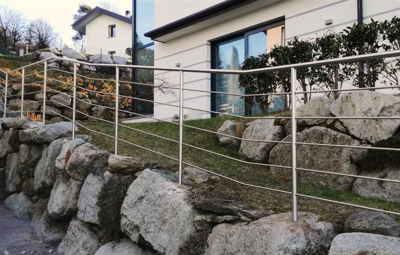 La recinzione horizon - R è composta da elementi orizzontali tondi da 12mm con pali ed elemento superiore in tubolare tondo diametro 33.7 o 38 mm.L'altezza ed il numero di elementi orizzontali puo' variare a seconda delle esigenze del cliente.E' disponibile in inox aisi 304 o 316.