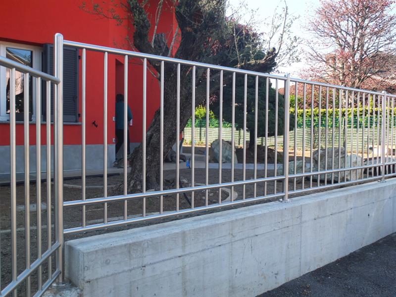 Recinzione modulare in tubolari d’acciaio inossidabile a sezione tonda con finitura satinata