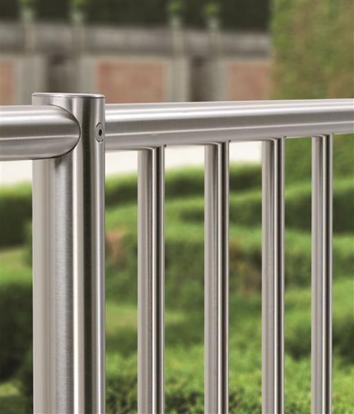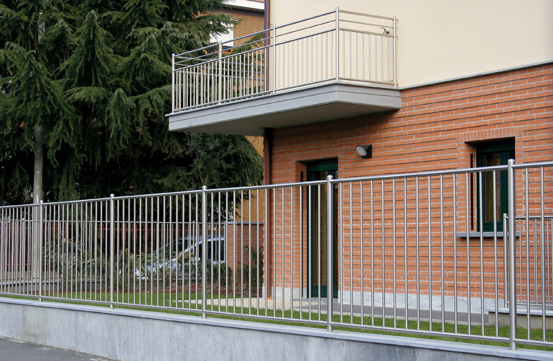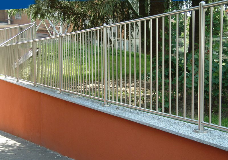 Il corrente superiore non presenta protuberanze.E' possibile aggiungere uno o piu' correnti orizzontali per personalizzare il disegno. Disponibile in Acciaio Inox AISI 304 e per zone marine in AISI 316.